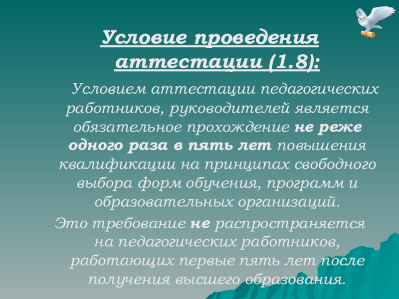 Это требование не распространяется на педагогических работников, работающих первые пять лет после получения высшего образования.