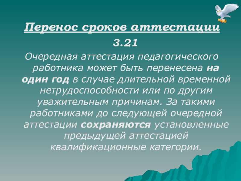 на один год в случае длительной временной нетрудоспособности или по другим уважительным причинам. За такими работниками до следующей очередной аттестации сохраняются установленные предыдущей аттестацией квалификационные категории.