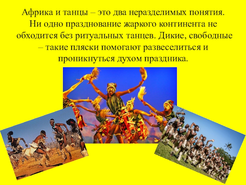 Слайд 8 Африка и танцы – это два неразделимых понятия. Ни одно празднование