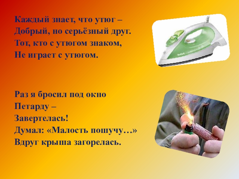 Бытовой прибор, из-за которого, если он будет оставлен включённым, может произойти пожар.
