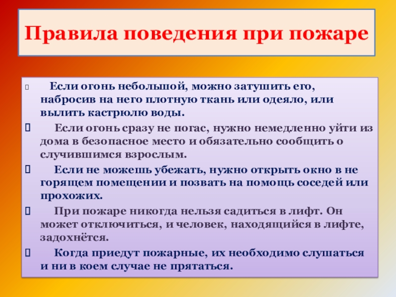 Когда приедут пожарные, их необходимо слушаться и ни в коем случае не прятаться.