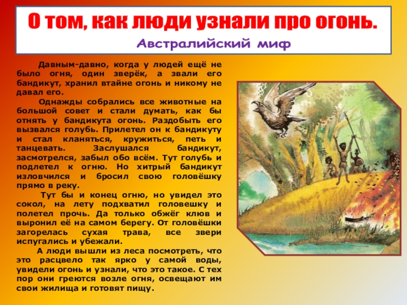 Слайд 4 Давным-давно, когда у людей ещё не было огня,
