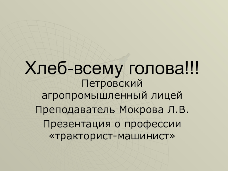 Хлеб-всему голова!!!Петровский агропромышленный лицейПреподаватель Мокрова Л.В.Презентация о профессии «тракторист-машинист»