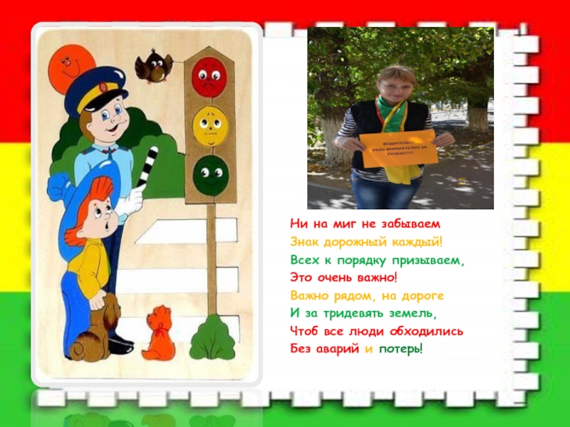 Ни на миг не забываем Знак дорожный каждый!Всех к порядку призываем,Это очень важно!Важно рядом, на дорогеИ за
