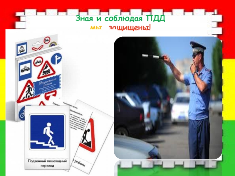Слайд 21Зная и соблюдая ПДД мы защищены!
