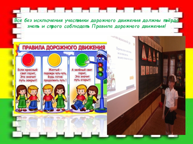 Слайд 15Все без исключения участники дорожного движения должны твёрдо знать и строго