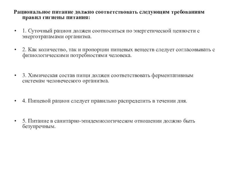 Слайд 22Рациональное питание должно соответствовать следующим требованиям правил гигиены питания: