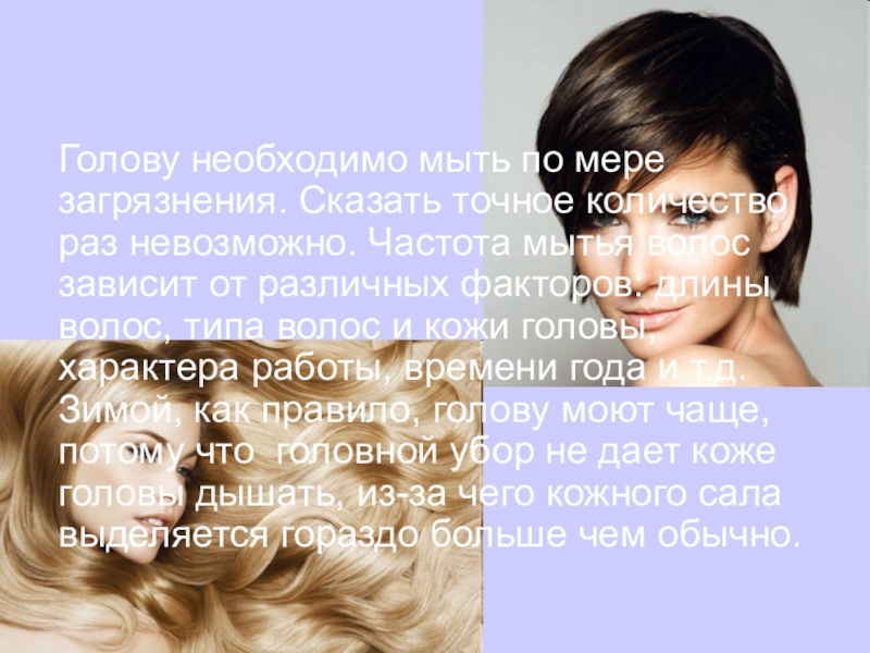 Слайд 11 Голову необходимо мыть по мере загрязнения. Сказать точное количество