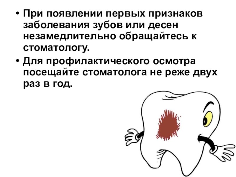 Слайд 17При появлении первых признаков заболевания зубов или десен незамедлительно обращайтесь к