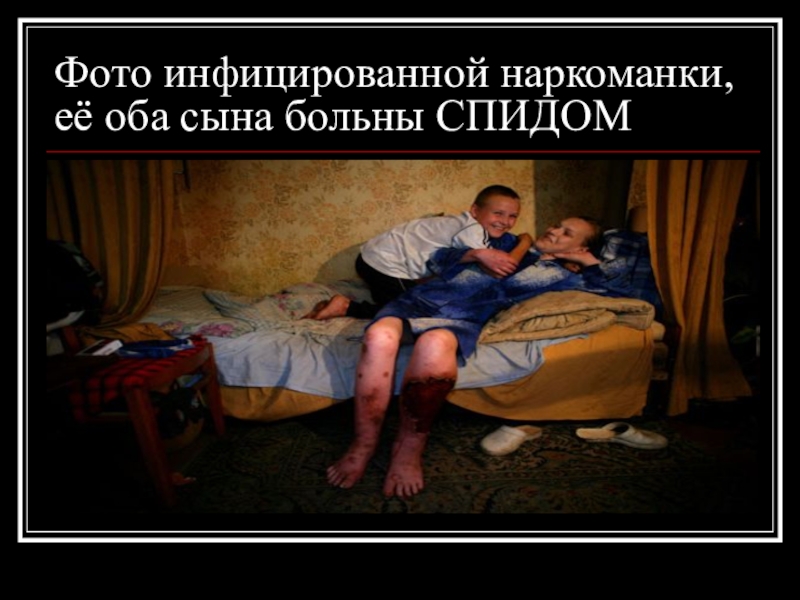 Слайд 33Фото инфицированной наркоманки, её оба сына больны СПИДОМ