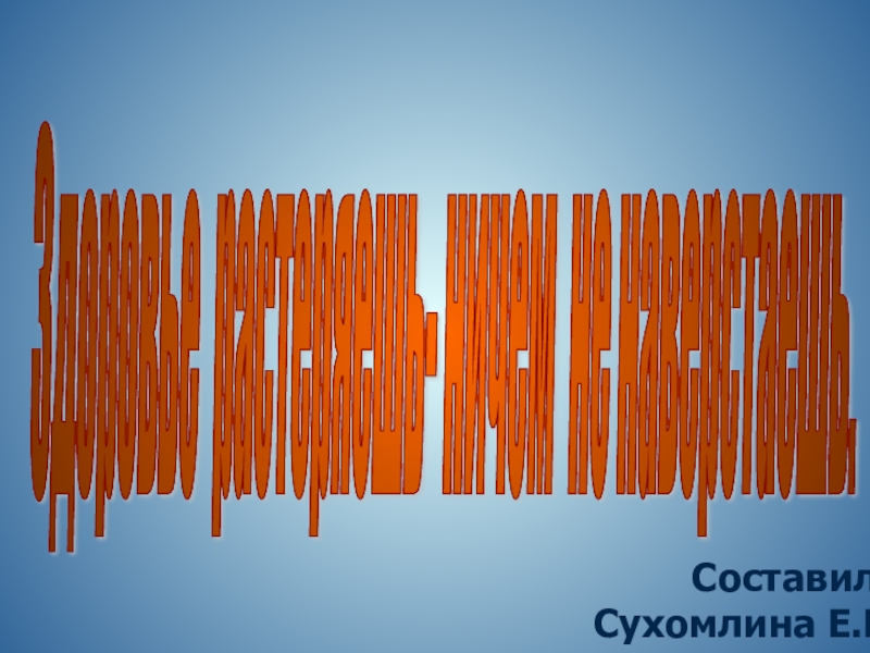 Здоровье растеряешь- ничем не наверстаешь. Составила Сухомлина Е.В.