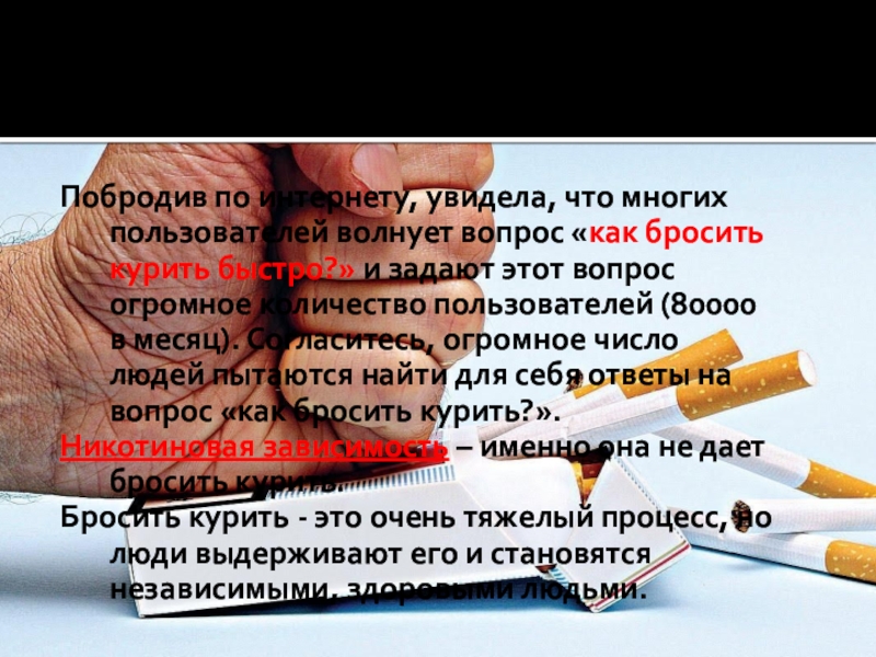 Слайд 11Побродив по интернету, увидела, что многих пользователей волнует вопрос «как бросить