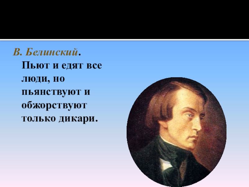 Слайд 15В. Белинский. Пьют и едят все люди, но пьянствуют и обжорствуют