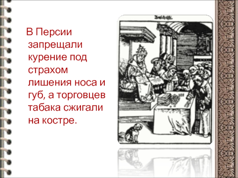 Слайд 12 В Персии запрещали курение под страхом лишения носа и
