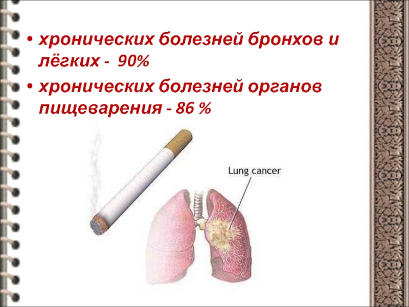 Слайд 58хронических болезней бронхов и лёгких - 90%