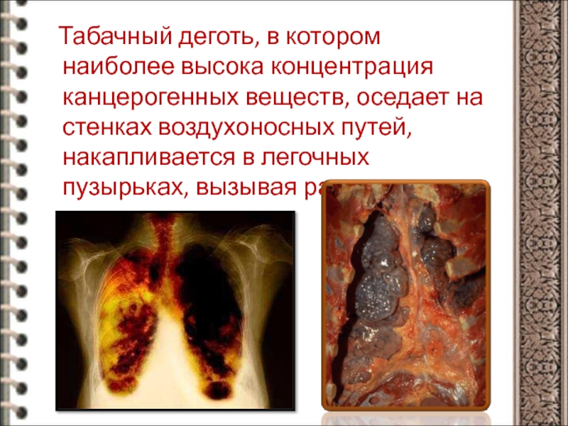 Слайд 29 Табачный деготь, в котором наиболее высока концентрация канцерогенных веществ,
