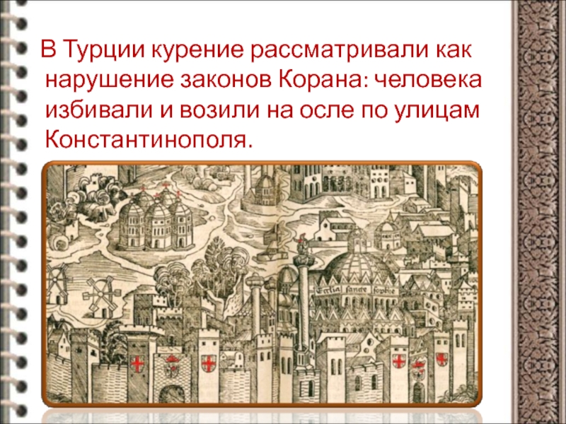 Слайд 11 В Турции курение рассматривали как нарушение законов Корана: человека