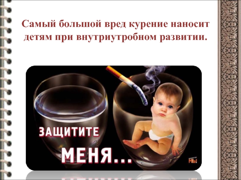 Слайд 39Самый большой вред курение наносит детям при внутриутробном развитии.