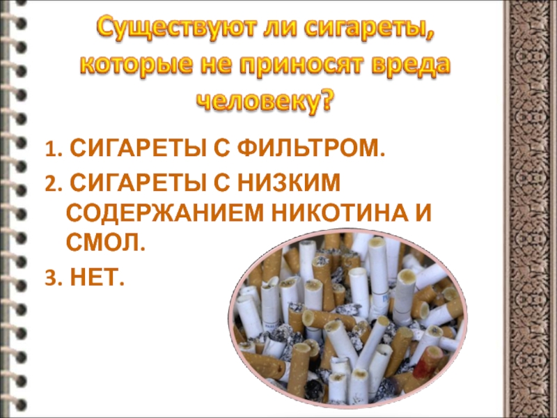 2. СИГАРЕТЫ С НИЗКИМ СОДЕРЖАНИЕМ НИКОТИНА И СМОЛ.