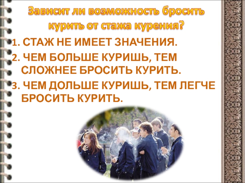 3. ЧЕМ ДОЛЬШЕ КУРИШЬ, ТЕМ ЛЕГЧЕ БРОСИТЬ КУРИТЬ.