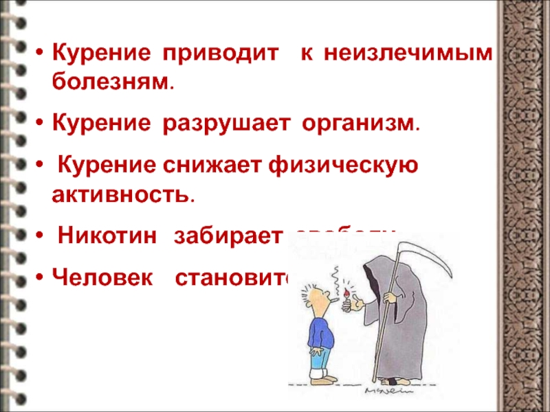 Слайд 48 Курящий наносит большой вред не только своему здоровью, но