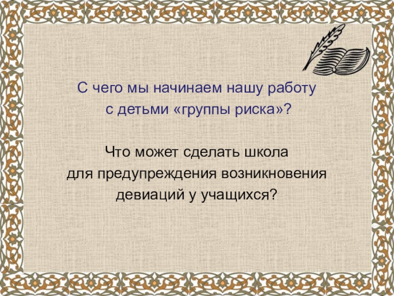 Задачи, которые мы ставим перед собой, состоят не в очередном рассмотрении и классификации форм девиантного поведения, причин его возникновения. А в поиске оптимальной модели, системы работы с такой категорией детей.