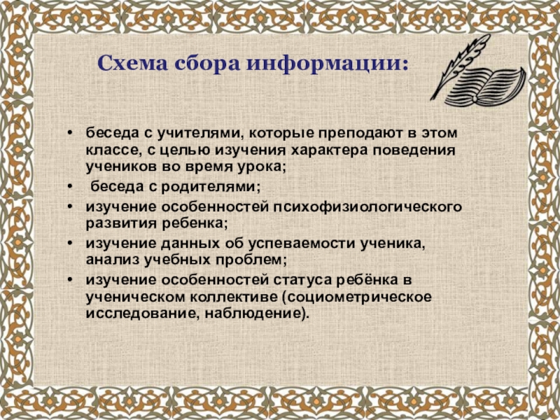 изучение данных об успеваемости ученика, анализ учебных проблем;