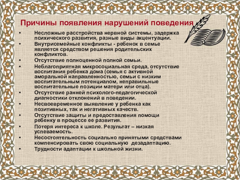 Отсутствие ранней психолого-педагогической диагностики отклонений в поведении.