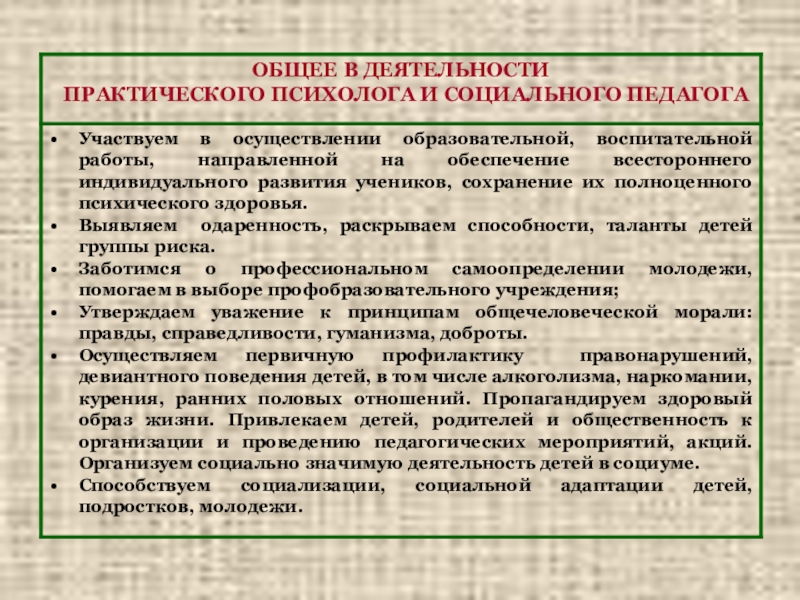 И СОЦИАЛЬНОГО ПЕДАГОГА