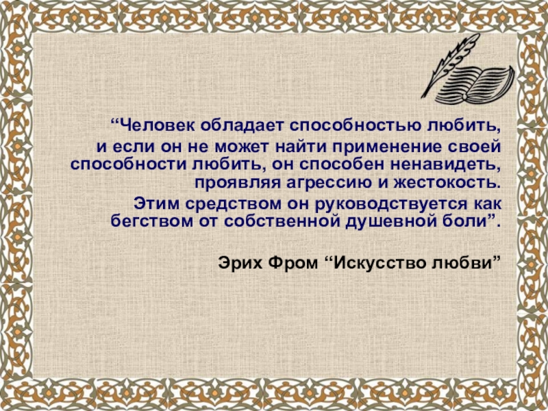 своей способности любить, он способен ненавидеть, проявляя агрессию и жестокость.
