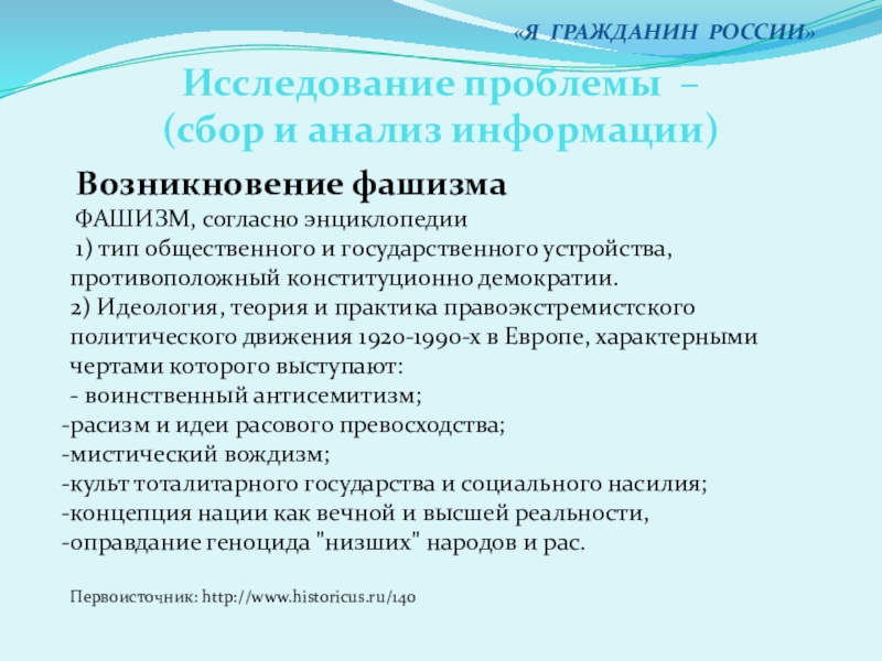 2) Идеология, теория и практика правоэкстремистского политического движения 1920-1990-х в Европе, характерными чертами которого выступают:
