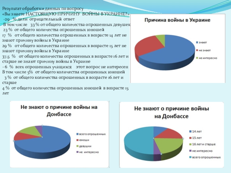29 % от общего количества опрошенных в возрасте 15 лет не знают причину войны в Украине