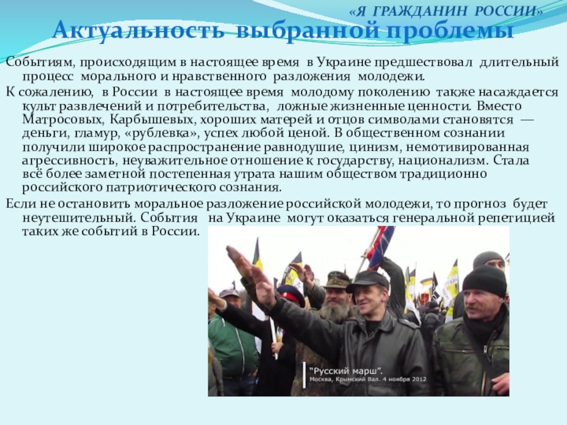 Если не остановить моральное разложение российской молодежи, то прогноз будет неутешительный. События на Украине могут оказаться генеральной репетицией таких же событий в России.