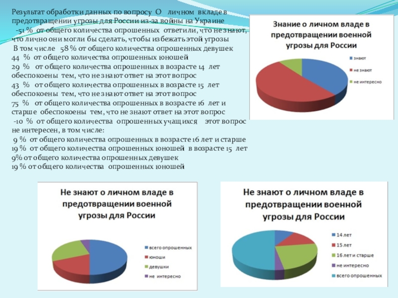 Слайд 61Результат обработки данных по вопросу О личном вкладе в предотвращении