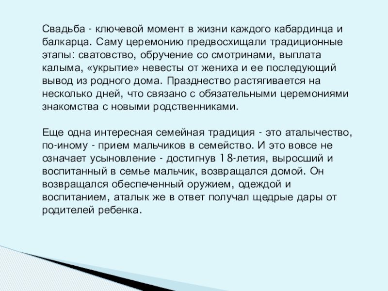 Презентация, доклад Обычаи и традиции кабардинцев и балкарцев.