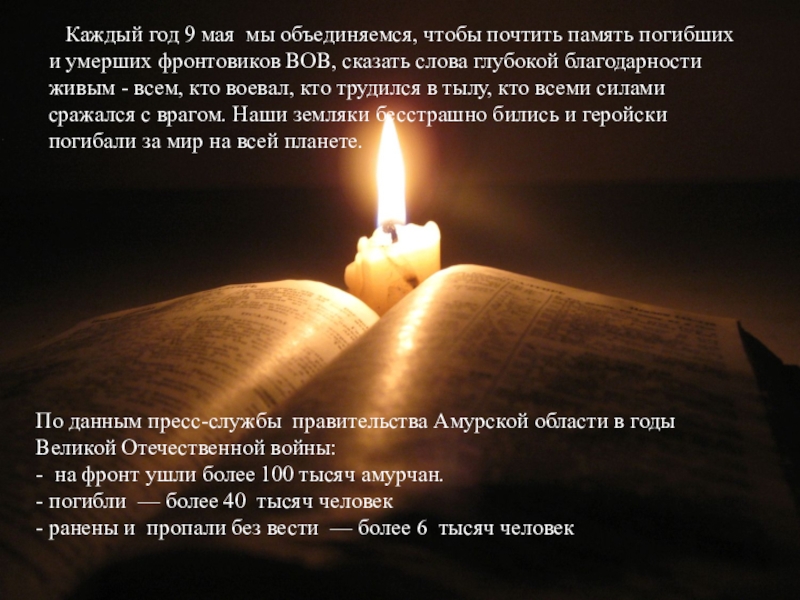 По данным пресс-службы правительства Амурской области в годы Великой Отечественной войны:
