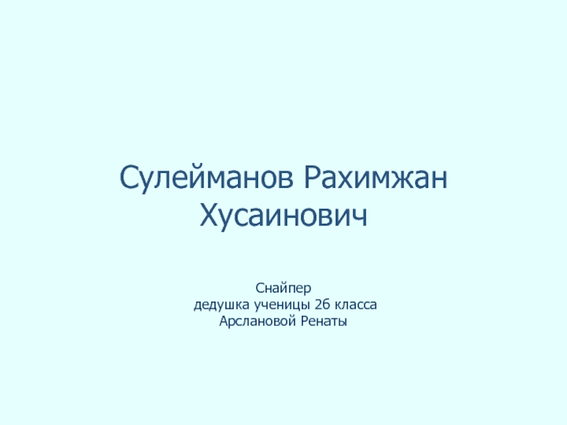 Сулейманов Рахимжан ХусаиновичСнайпер дедушка ученицы 2б класса Арслановой Ренаты