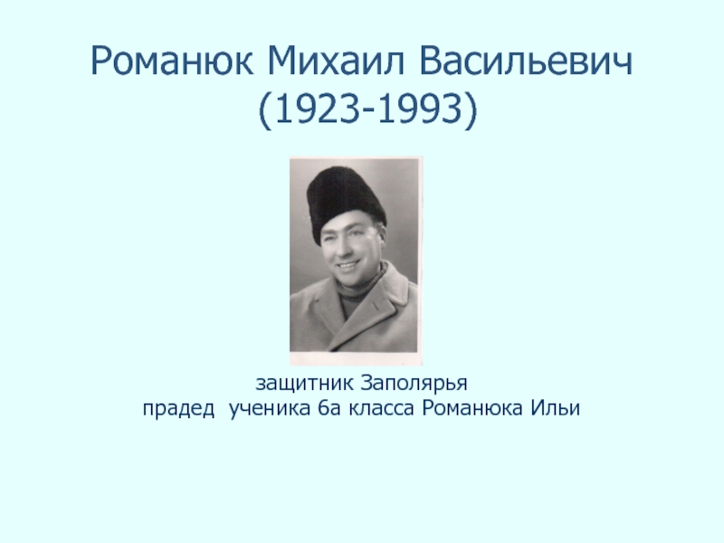 Романюк Михаил Васильевич  (1923-1993)защитник Заполярьяпрадед ученика 6а класса Романюка Ильи