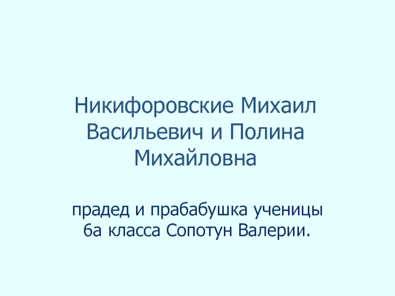 Слайд 20Никифоровские Михаил Васильевич и Полина Михайловна