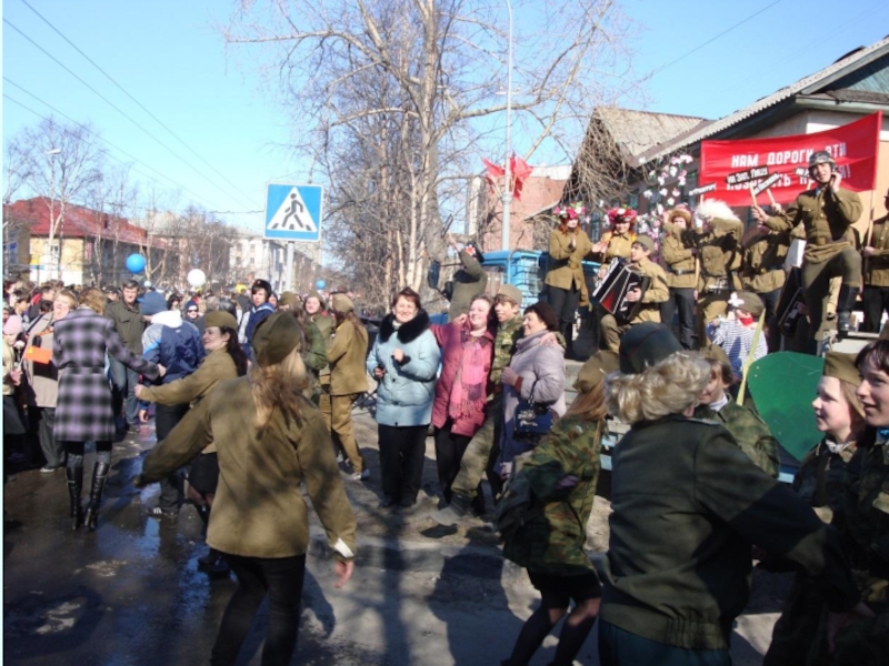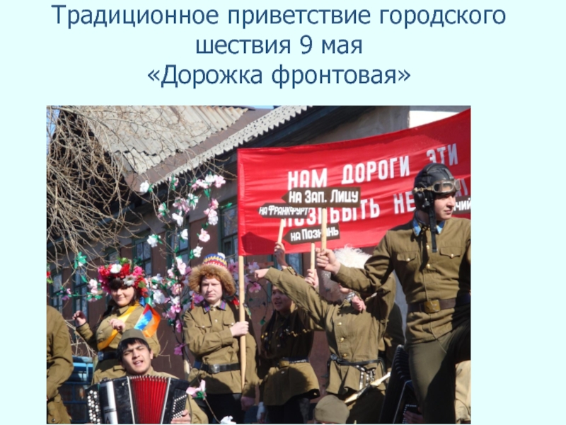 Слайд 39Традиционное приветствие городского шествия 9 мая «Дорожка фронтовая»
