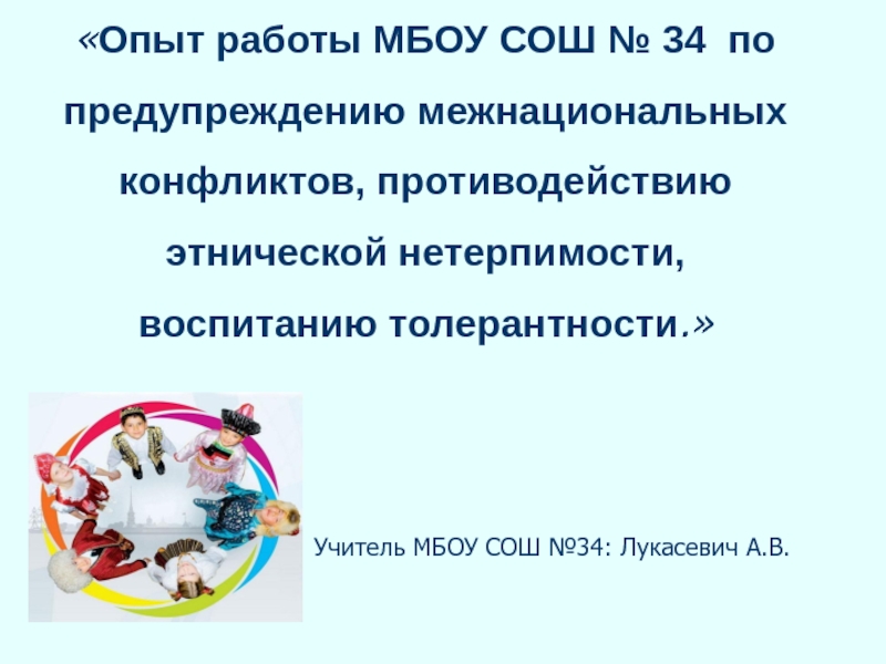 «Опыт работы МБОУ СОШ № 34 по предупреждению межнациональных конфликтов, противодействию этнической нетерпимости, воспитанию толерантности.»