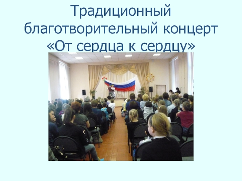 Слайд 21Традиционный благотворительный концерт «От сердца к сердцу»