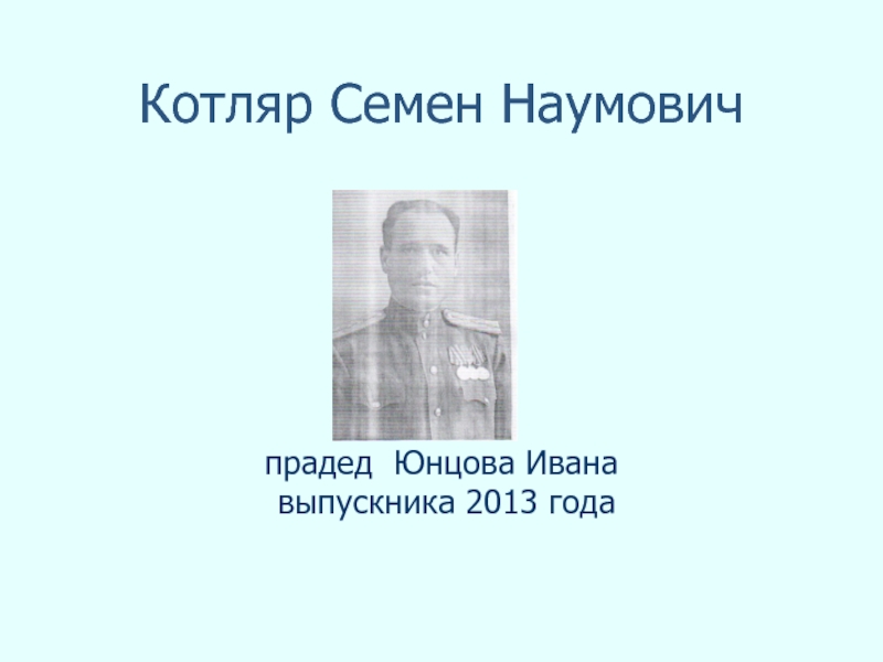 Котляр Семен Наумовичпрадед Юнцова Ивана выпускника 2013 года