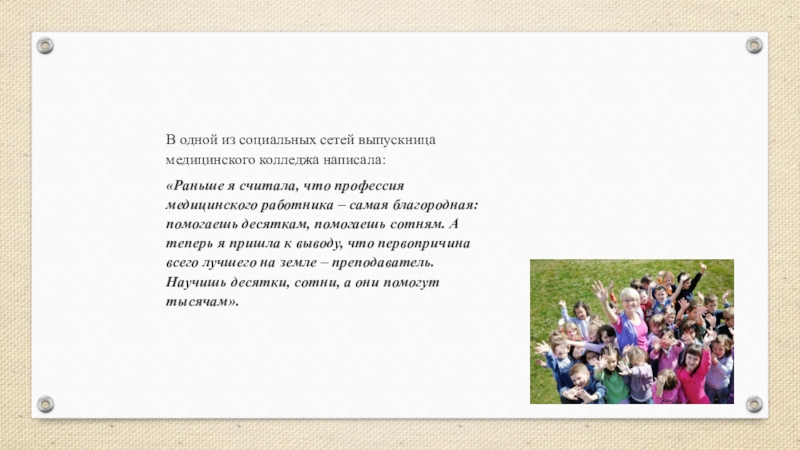 Это сайт презентаций, где можно хранить и обмениваться своими презентациями, докладами, проектами, шаблонами в формате PowerPoint с другими пользователями. Мы помогаем школьникам, студентам, учителям, преподавателям хранить и обмениваться учебными материалами.