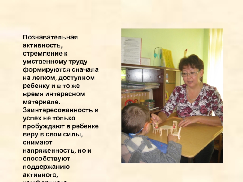 формируются сначала на легком, доступном ребенку и в то же время интересном материале. Заинтересованность и успех не только пробуждают в ребенке веру в свои силы, снимают напряженность, но и способствуют поддержанию активного, комфортного состояния.