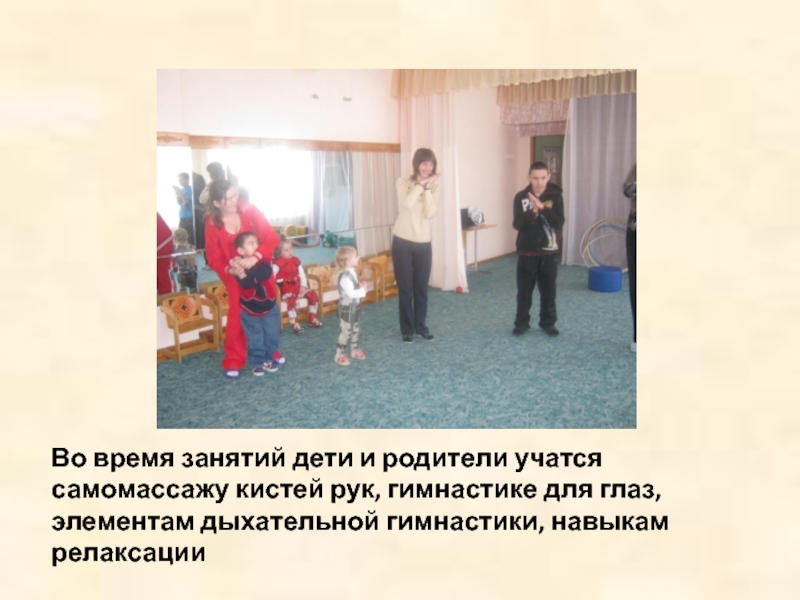 Во время занятий дети и родители учатся самомассажу кистей рук, гимнастике
