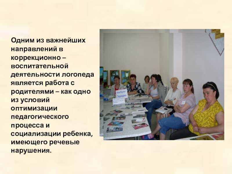 коррекционно – воспитательной деятельности логопеда является работа с родителями – как одно из условий оптимизации педагогического процесса и социализации ребенка, имеющего речевые нарушения.