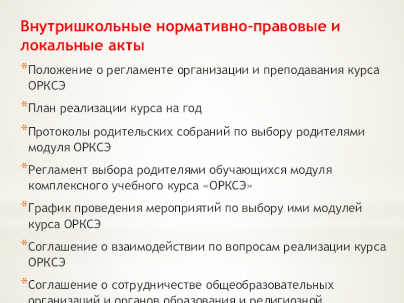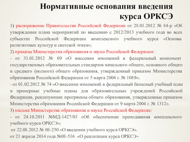 Нормативные основания введения курса ОРКСЭ