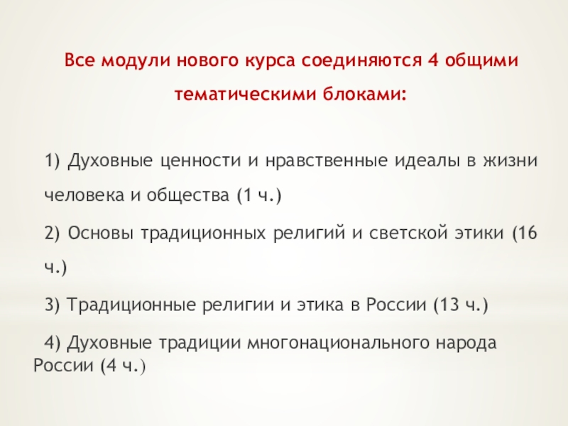 Слайд 37Все модули нового курса соединяются 4 общими тематическими блоками: