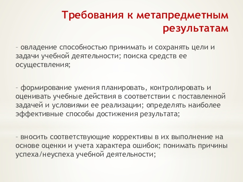 Слайд 25Требования к метапредметным результатам